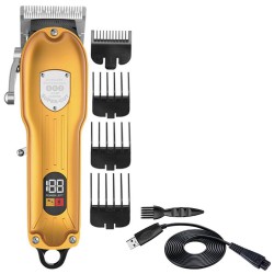 Especificación: Tipo de artículo: Juego de cortapelos eléctrico Peso: 434 g/15,3 oz Material: acero inoxidable Batería: batería de litio 18650 de 2000 mah (se envía con batería incorporada) )